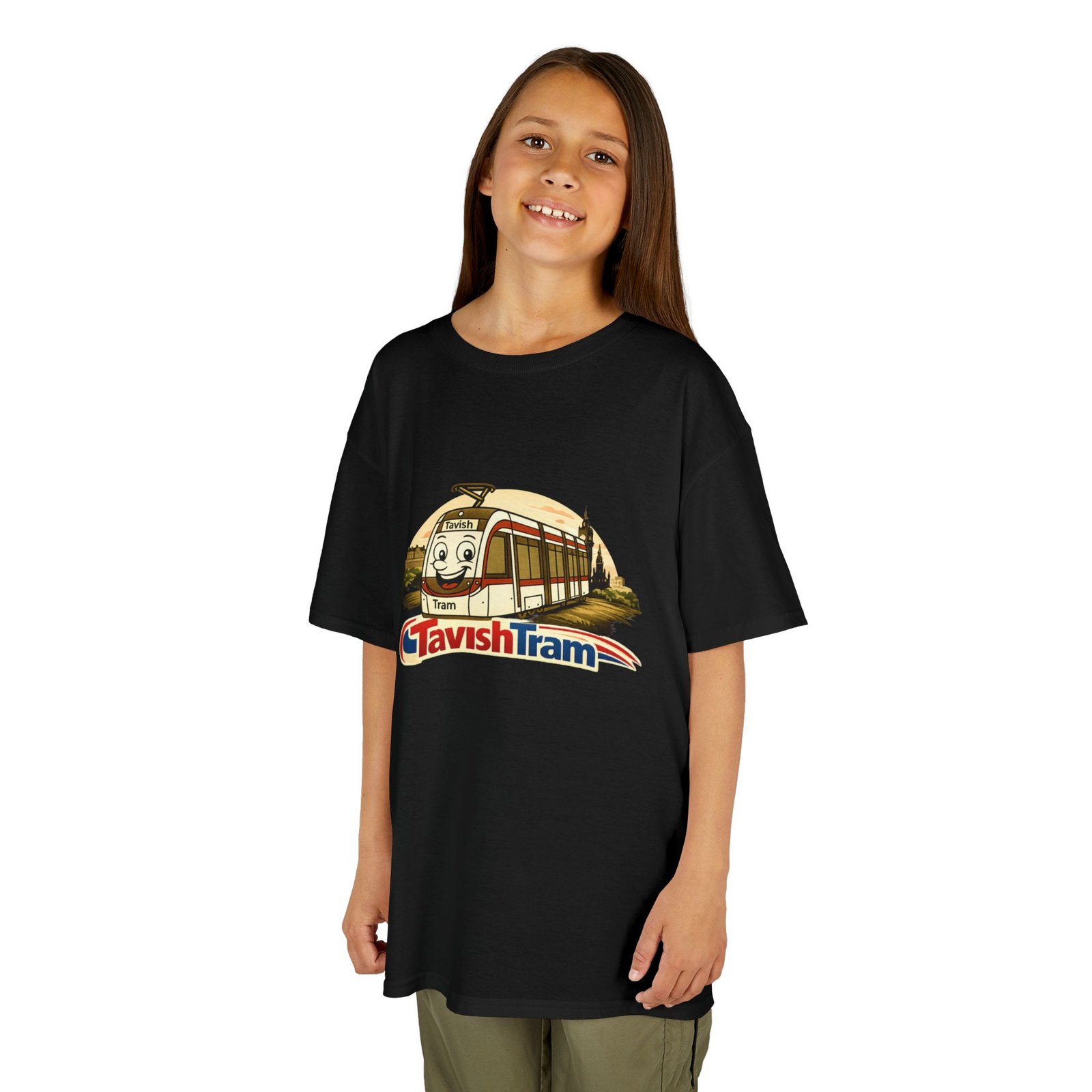 TavishTram, lightweight and soft, this kids tee brings a cheerful tram illustration to everyday play. The friendly, modern Edinburgh-style tram sits centered on a classic white crewneck, made from midweight US cotton that feels gentle against young skin. Durable ribbed collar and shoulder tape keep the shape through washes and rough-and-tumble days. The simple silhouette pairs easily with shorts or jeans, and the DTF/DTG printing gives the artwork clean, lasting color. REACH- and Oeko-Tex-certified materials and tear-away labels keep parents confident and kids comfortable.